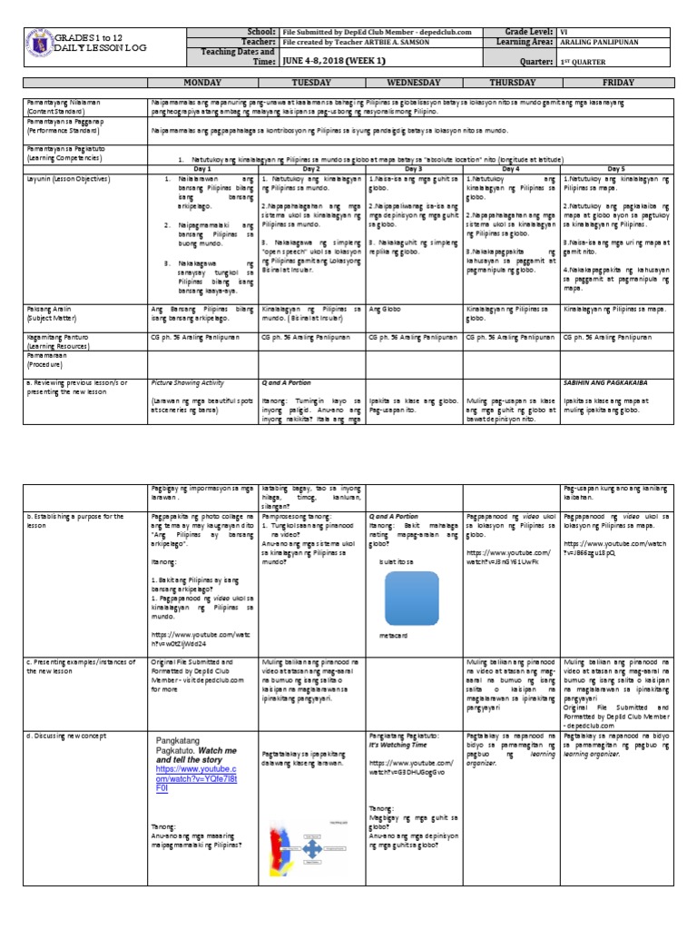 Dll Araling Panlipunan 6 Q1 W1 Docx